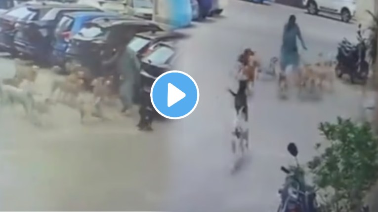 महिलेच्या पतीने या घटनेचा व्हिडीओ सोशल मीडियावर शेअर केला आणि दावा केला की परिसरात कुत्र्यांचा त्रास वाढत आहे आणि अलीकडच्या काळात अनेक मुले कुत्र्यांच्या हल्ल्याला बळी पडली आहेत. त्यांनी सोसायटीतील रहिवाशांना परिसरातील कुत्र्यांना खायला न देण्याचे आवाहन केले. कारण- त्यामुळे परिसरातील इतर लोकांना त्रास होतो. सुदैवाने ही घटना एका महिलेसोबत घडली; पण जर ही घटना एखाद्या लहान मुलासोबत घडली असती, तर कदाचित त्या मुलाला या कुत्र्यांपासून आपला जीव वाचवता आला नसता. संपूर्ण देशभरात भटक्या कुत्र्यांची दहशत पाहायला मिळत असून, व्हिडीओ पाहून नेटकरीही संताप व्यक्त करीत आहेत.