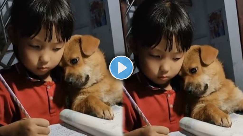 या व्हायरल व्हिडीओमध्ये तुम्ही पाहू शकता, एक चिमुकली शाळेचा अभ्यास करत असून यावेळी तिच्या बाजूला तिचा पाळीव श्वानदेखील बसलेला दिसत आहे. यावेळी ती चिमुकली अभ्यासात मग्न असून श्वान तिच्या कुशीत येऊन बसतो आणि ती काय लिहितेय हे पाहतो. या दोघांचं हे क्युट बॉण्डिंग पाहून अनेक जण कौतुक करत आहेत.