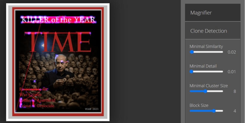 यावर तारीख यंदाचीच म्हणजेच २५ डिसेंबर २०२३ होती. त्यानंतर आम्ही फॉरेन्सिकली नावाचे टूल वापरून इमेज रन केली. त्याच्या ‘क्लोन डिटेक्शन’ द्वारे, फॉरेन्सिकली क्लोन टूल कॉपी पेस्ट पर्याय वापरून कॉपी केले गेले असावेत असे वाटणारे भाग हायलाइट करते. आणि आम्हाला फोटोवर काही हायलाइट्स आढळून आल्या.