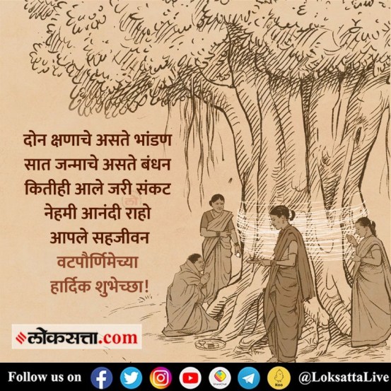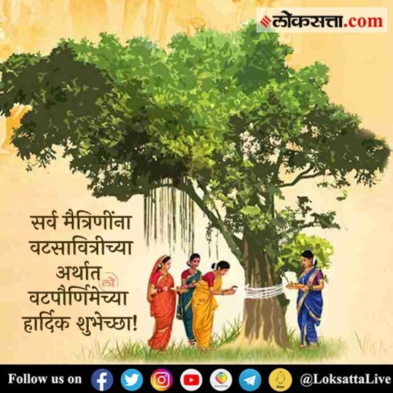 Vat Purnima 2023 Messages Quotes Wishes in Marathi: देशाच्या विविध भागात वेगवेगळ्या तिथीवर वटपौर्णिमा साजरी केली जाते. उत्तरेकडील राज्यांमध्ये ज्येष्ठ महिन्यात येणाऱ्या अमावास्येला तर मध्य भारतात ज्येष्ठ मासातील पौर्णिमेला वटपौर्णिमा साजरी केली जाते. महाराष्ट्र आणि गुजरात या राज्यांमध्ये या वर्षी वट पौर्णिमा ही ३ जूनला साजरी केली जाणार आहे. वटपौर्णिमेचा शुभ मुहूर्त हा सकाळी ११ वाजता सुरू होणार तर दुसऱ्या दिवशी सकाळी ९ वाजून १० मिनिटांनी पौर्णिमा समाप्ती होणार आहे. हल्ली कोणताही सण असो शुभेच्छा देताना WhatsApp Status, इंस्टाग्राम स्टोरीज, फेसबुक पोस्ट हे महत्त्वाचे ठरतात. म्हणूनच वटपौर्णिमेच्या शुभेच्छा अगदी मराठमोळ्या ढंगात देण्यासाठी मराठी शुभेच्छा मेसेज, Wishes, HD Images, आम्ही आजच शेअर करत आहोत. तुमच्या मैत्रिणींसह ही मराठी ग्रीटिंग्ज व शुभेच्छापत्र फ्रीमध्ये डाउनलोड करून शेअर करू शकता.