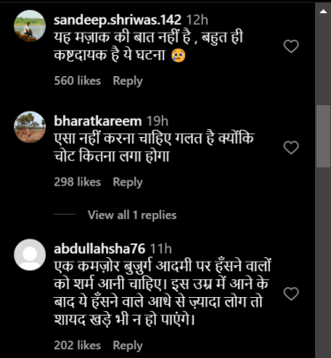 व्हिडीओ व्हायरल होताच नेटकऱ्यांनी यावर प्रतिसाद देत आपल्या प्रतिक्रिया शेअर केल्या आहेत. काहींनी ही घटना हसण्यावारी नेली तर काहींनी यामुळे तिरंग्याचा अपमान झाला आहे असे म्हणून संताप व्यक्त केला आहे. काहींनी वयोवृद्धाला लागलं ते फार वाईट झालं, अशा स्वरात काळजी व्यक्त केली आहे.