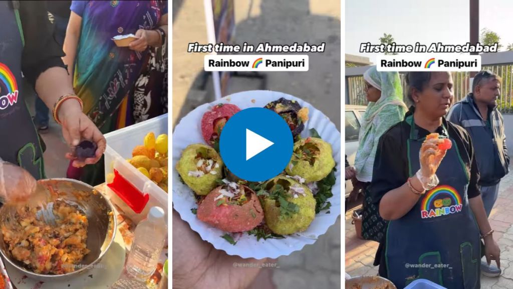 पण, सध्या सोशल मीडियावर ‘फ्यूजन फूड’चा ट्रेंड वाढत आहे. तसेच सर्व पदार्थांना पौष्टिक कसे बनवता येऊ शकते, याकडे अनेक जण लक्ष देतात. यातच सोशल मीडियावर सध्या गुजरातमधील ‘रेनबो पाणीपुरी’ची जोरदार चर्चा सुरू आहे. तुम्ही ‘सिक्स फ्लेव्हर पाणीपुरी’ याबद्दल ऐकले असेल आणि खाल्लीसुद्धा असेल. यामध्ये वेगवेगळ्या चवीच्या पाण्याचा [लसूण, पुदिना, जलजिरा इत्यादी] वापर करण्यात येतो. मात्र, या रेनबो पाणीपुरीमध्ये पुरीपासून ते पाण्यापर्यंत सर्वांमध्ये भाज्यांचा रस आणि हळद यांचा वापर करण्यात आला आहे.