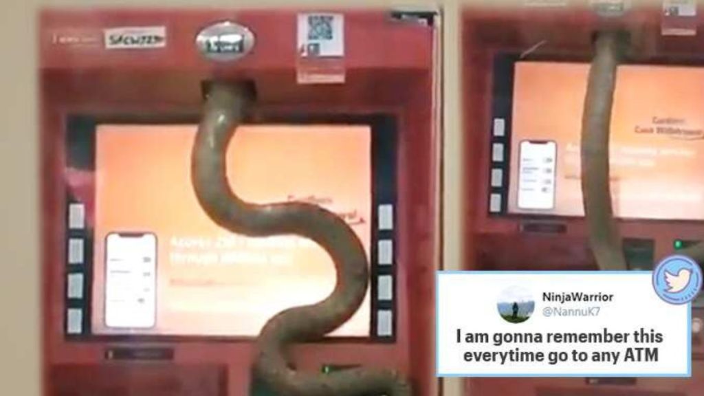 ट्विटरवर कर्नल डीपीके पिल्ले यांनी शेअर केलेल्या व्हिडिओमध्ये, एटीएममध्ये साप शिरत असल्याचे दिसत आहे. “हे स्वतःहून बाहेर येईल, दूर राहा,” व्हिडिओमध्ये एक व्यक्ती असे म्हणताना ऐकू येते.