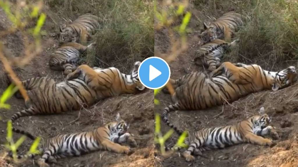 Tiger Viral video: सोशल मीडियावर प्राण्यांशी संबंधीत तुम्ही अनेक व्हिडीओ पाहिले असतील. हे व्हिडीओ कधी थरारक असतात. तर काही व्हिडीओ हे मजेदार असतात. काही वन्य प्राणी असे असतात की ते जंगलात असो किंवा दुसरीकडे कुठे, त्यांची भीती कायम असते. यात सिंह आणि वाघांचा क्रमांक पहिला येतो. ते जगातील सर्वात भयानक प्राण्यांपैकी एक मानले जातात, जे मानवांवर देखील हल्ला करण्यास मागेपुढे पाहत नाहीत. त्यांना भूक लागली तर ते कोणालाही आपला बळी बनवू शकतात. आतापर्यंत तुम्ही वाघाला एकट्यालाच पाहिलं असेल पण कधी त्याच्या कुटुंबासोबत पाहिलंय का? मग हा पाहा व्हिडीओ.