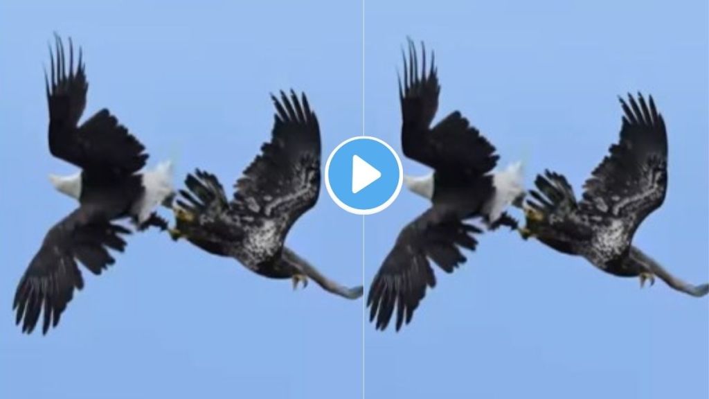 हा व्हिडीओ ‘मुकुल सोमण’ नावाच्या युजरने ‘इन्स्टाग्राम’वर शेअर केला आहे. त्याच्या कॅप्शनमध्ये लिहिले आहे, ‘मौत का हवाई चक्कर.’ व्हिडीओमध्ये दोन गरुड हवेत एकमेकांशी झुंजताना आणि लढताना कलाबाजी करताना दिसत आहेत. दोन्ही गरुडांनी एकच मासा आपल्या पंजांनी पकडून ठेवला आहे आणि तो दुसऱ्याकडून हिसकावण्यासाठी दोघेही सर्व शक्ती एकवटून वापरताना दिसतात. दोघेही दुसऱ्याच्या पकडीतून तो मासा संपूर्णत: स्वतकडे खेचून घेण्यासाठी हवेत अनेक वेळा डुबकी मारतात. पण शेवटी मासा त्यांच्या पकडीतून सुटतो आणि जमिनीवर पडतो.