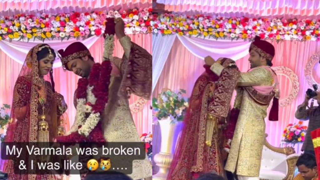 लग्न म्हणजे आयुष्यातला सर्वात मोठा क्षण, हा क्षण निर्विघ्न पार पडावा असं प्रत्येकालाच वाटत असतं. दरम्यान या व्हायरल झालेल्या व्हिडीओमध्ये छोटीशी अडचण आली. या व्हिडीओमध्ये तुम्ही पाहू शकता, नवरा नवरी स्टेजवर उभे आहेत, ते एकमेकांना हार घालणार इतक्यात नवरदेवाच्या हातातील हार तुटतो. हे पाहिल्यानंतर नवरीही नाराज होते. मात्र पुढच्याच क्षणी नवरदेव याकडे दुर्लक्ष करत त्या हाराची स्वत:चं गाठ बांधतो आणि अखेर नवरीला हार घालतो. नवरदेवाच्या या कृतीचं सगळ्यांनीच कौतुक केलंय.