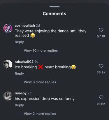 व्हिडीओ पाहून अनेकांचा हास्यस्फोट झालाच; पण काहींनी आपापल्या प्रतिक्रिया देत व्हिडीओवर कमेंट्सही केल्या आहेत. एका युजरनं कमेंट करीत लिहिलं की, जोपर्यंत त्यांना गाणं लक्षात आलं नाही तोपर्यंत ते मस्तपैकी नाचत होते. दुसऱ्यानं आता हा मुलगा परत कधीच डान्स करणार नाही, अशी मजेशीर कमेंट केली. एक जण म्हणाला, “दोघांचा आनंद काही सेकंदांतच नष्ट केला.”
