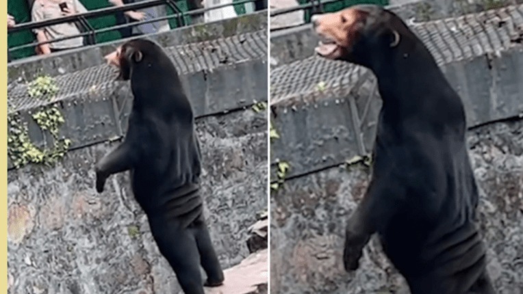 व्हिडिओमध्ये अस्वल आपल्या मागच्या पायावर उभे राहून पर्यटकांकडे पाहत असल्याचे दिसत आहे. हांगझू प्राणीसंग्रहालयाने आपल्या निवेदनात म्हटले आहे की, ”अस्वल हे मलायन सूर्य अस्वल आहे, अस्वलाची सर्वात लहान प्रजाती आहे. ते तपकिरी काळ्या अस्वलाच्या अर्ध्या आकाराचे आणि बारीक असतात.”