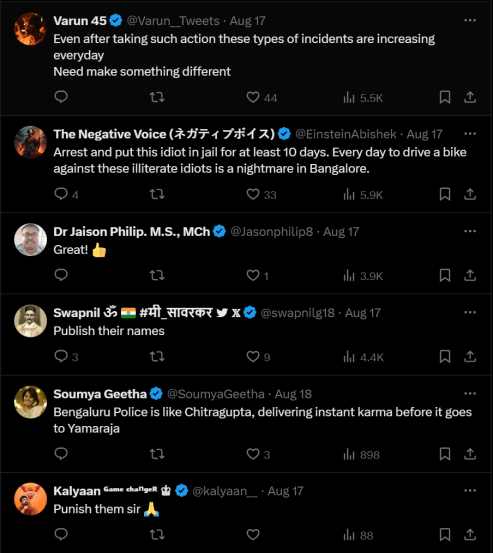 “त्यांना किमान ५०,००० रुपये दंड करा, तरच ते पुन्हा कधीही त्यांच्या बाईकला हात लावणार नाहीत. दुर्दैवाने घटनात्मक कायदा याला परवानगी देत नाही”, अशी कमेंट एका युजरने केली.” तर एक जण म्हणाला, “बाईकच्या मागे नंबरप्लेट नसलेल्या वाहनांचा उपद्रव झाला आहे, या विरोधात कठोर कारवाई झालीच पाहिजे.”