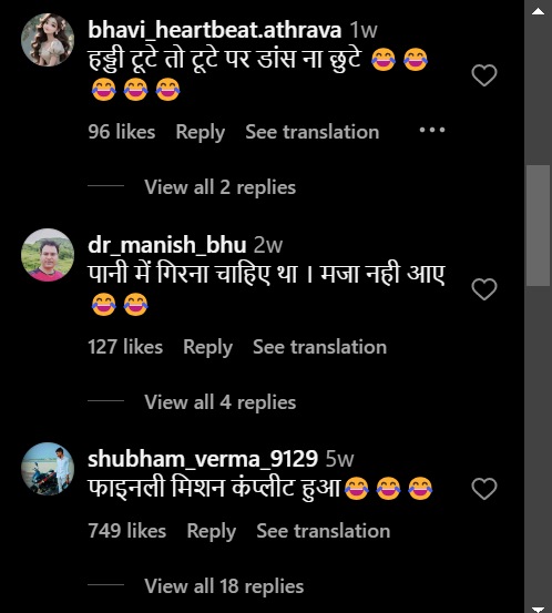 व्हिडीओ व्हायरल होताच नेटकऱ्यांनी यावर कमेंट्सचा वर्षाव केला आहे. एकाने कमेंट करत लिहिलं, “हड्डी टूटे तो टूटे पर डांस ना छुटे”, तर दुसऱ्याने “खाली पडली तरी हसतेय”