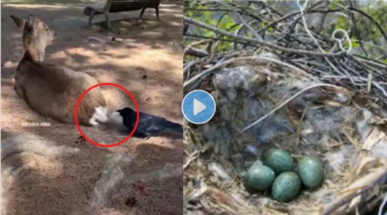 असे म्हटले जाते की कावळ्यांना त्यांचे घरटे बांधण्यासाठी सुमारे दोन आठवडे लागतात. ते त्यात अंडी घालतात आणि अंड्यातून पिल्ल बाहेर येऊन उडण्यास सक्षम झाल्यानंतर घरट सोडतात. काही पक्षी कधीकधी घरटे बांधण्यासाठी प्राण्यांची फर किंवा केस वापरतात. सोशल मीडियावर व्हायरल झालेल्या व्हिडीओमध्ये एक कावळा आपल्या घरट्यासाठी हरणाच्या शेपटीचे फर चोरत आहे. इन्स्टाग्रामवर ‘नेचर’ पेजने कॅप्शनसह व्हिडीओ पोस्ट केला आहे. त्याने कॅप्शनमध्ये लिहिले की, ‘मला घरटे बनवण्यासाठी ही फर हवी आहे. धन्यवाद साहेब.’