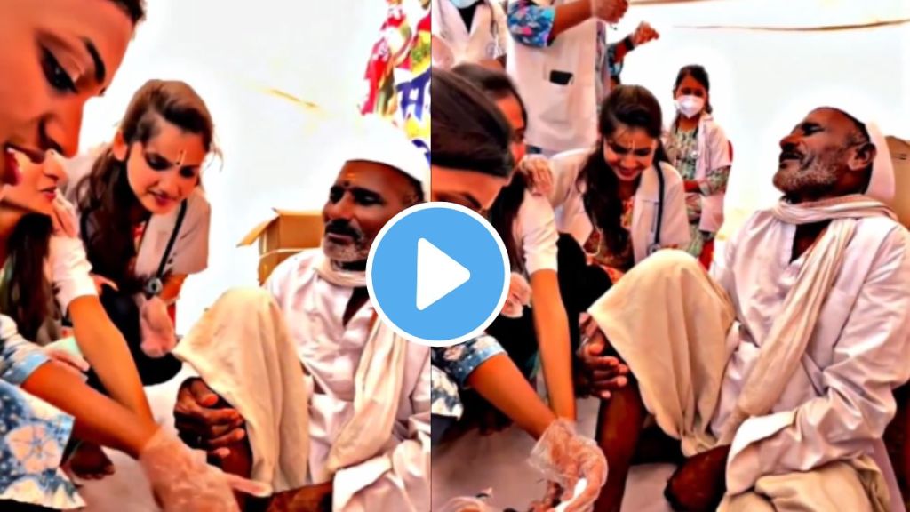 या व्हायरल व्हिडीओमध्ये तुम्हाला डॉक्टर मुली आणि वारकरी दिसतील. या डॉक्टर असलेल्या मुली वारकऱ्याच्या पायावरील दुखापतीवर मलमपट्टी करताना दिसत आहेत. त्यादरम्यान त्यांच्यातील संवाद सध्या व्हायरल होत आहे …