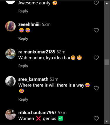व्हायरल झालेला हा व्हिडीओ पाहून अनेकांना आश्चर्याचा धक्काच बसला आहे, म्हणून हा व्हिडीओ पाहून अनेकांनी आपल्या प्रतिक्रिया शेअर केल्या आहेत. एका युजरने कमेंट करत लिहिलं, “दिवाळी येतेय, ही चांगली कल्पना आहे”. तर दुसऱ्याने “याला म्हणतात स्मार्ट वर्क” अशी कमेंट केली. एकजण कमेंट करत म्हणाला, “व्वा मॅडम, काय कल्पना आहे.” तर अनेकांनी “जिथे इच्छा तिथे मार्ग”, “ही युक्ती भारताबाहेर गेली नाही पाहिजे”, “या काकींना ऑस्कर मिळायला हवा” अशा अनेक कमेंट्स केल्या आहेत.