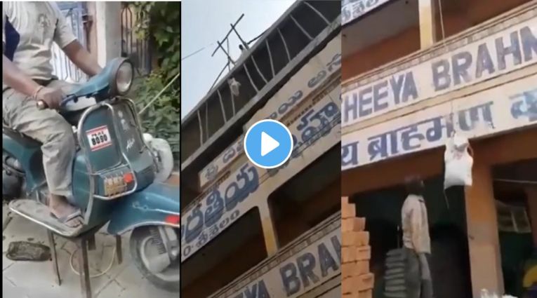हा व्हिडिओ पाहून हाय टेक्नॉलॉजीही लाजेल अशा प्रकारची क्रिएटीव्हीटी या कामगाराने केली आहे. एका कामगाराने आपलं काम सोप्पं आणि पटकन होण्यासाठी स्कूटरच्या साहाय्याने विटांची पोती छतावर नेण्यासाठी एक उत्तम पर्याय शोधला आहे. व्हिडिओमध्ये एका इमारतीचे बांधकाम सुरू असल्याचे दिसत आहे. बांधकामासाठी छतावर विटा नेण्याचे अवघड काम सोपे करण्यासाठी एका मजुराने चक्क स्कूटरला मशीन जोडून जबरदस्त जुगाड केलं आहे.