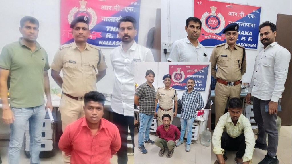याप्रकरणी वसई लोहमार्ग पोलीस ठाण्यात तक्रार दाखल करण्यात आली होती. तर रेल्वे सुरक्षा दलाच्या अधिकाऱ्यांकडून याप्रकरणी तपास सुरू करण्यात आला होता. रेल्वे स्थानकावर पाळत ठेऊन तसेच सीसीटीव्ही कॅमेरे तपासून अधिकाऱ्यांनी ऋषभ गुप्ता (३०), लखेंद्र दास (१९) आणि आकाश भौमिक (२९) या तिन्ही आरोपींना ताब्यात घेतले असून पुढील कारवाईसाठी वसई रेल्वे पोलिसांच्या स्वाधीन केले आहे.