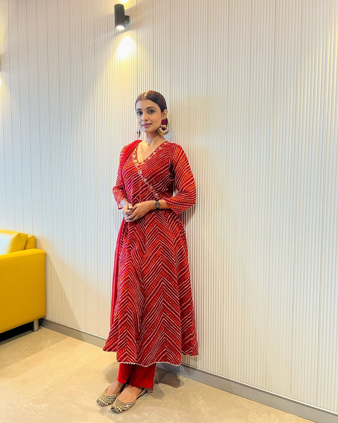 प्रमोशनसाठी गुलाबी रंगाच्या अनारकली ड्रेसमधील खास लूक