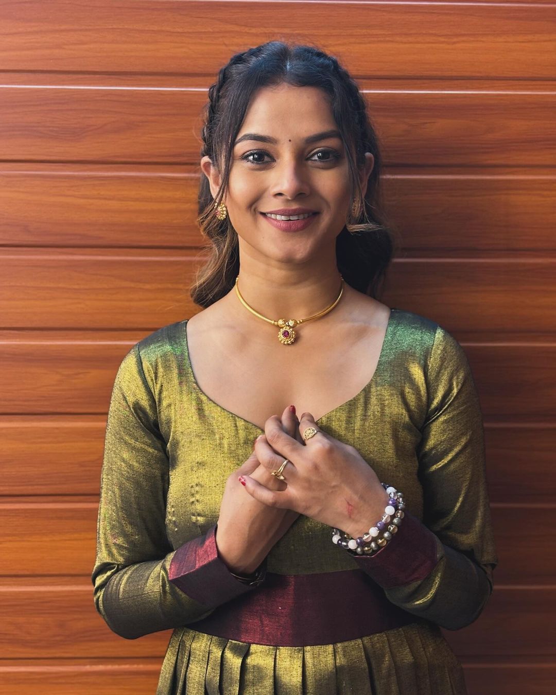 मेहेंदी रंगाच्या गाऊनमधील सुंदर लूक