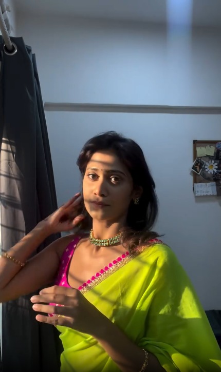 मैत्रिणीच्या लग्नासाठी नेसली पोपटी रंगाची साडी