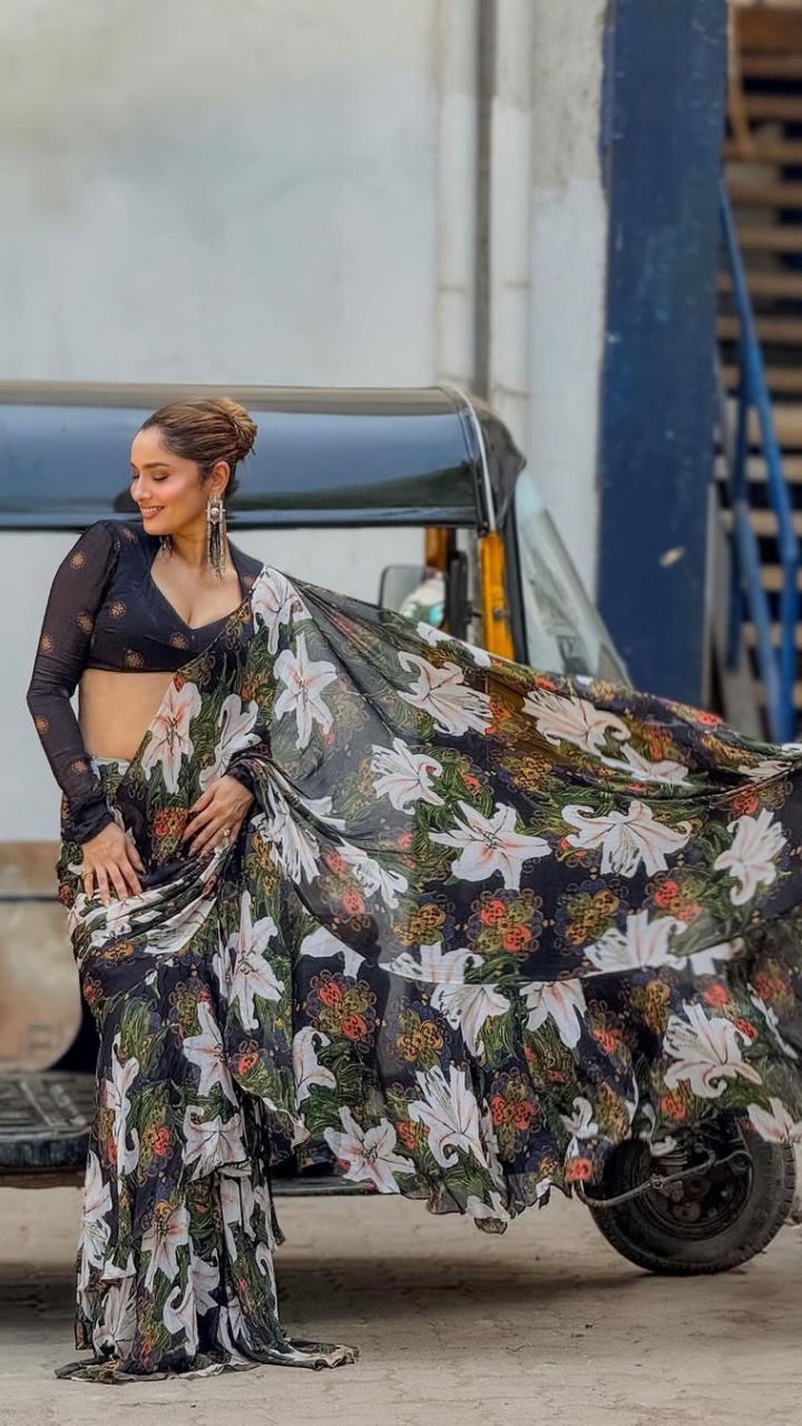 अभिनेत्रीने परिधान केली आहे काळ्या रंगाची फ्लोरल साडी