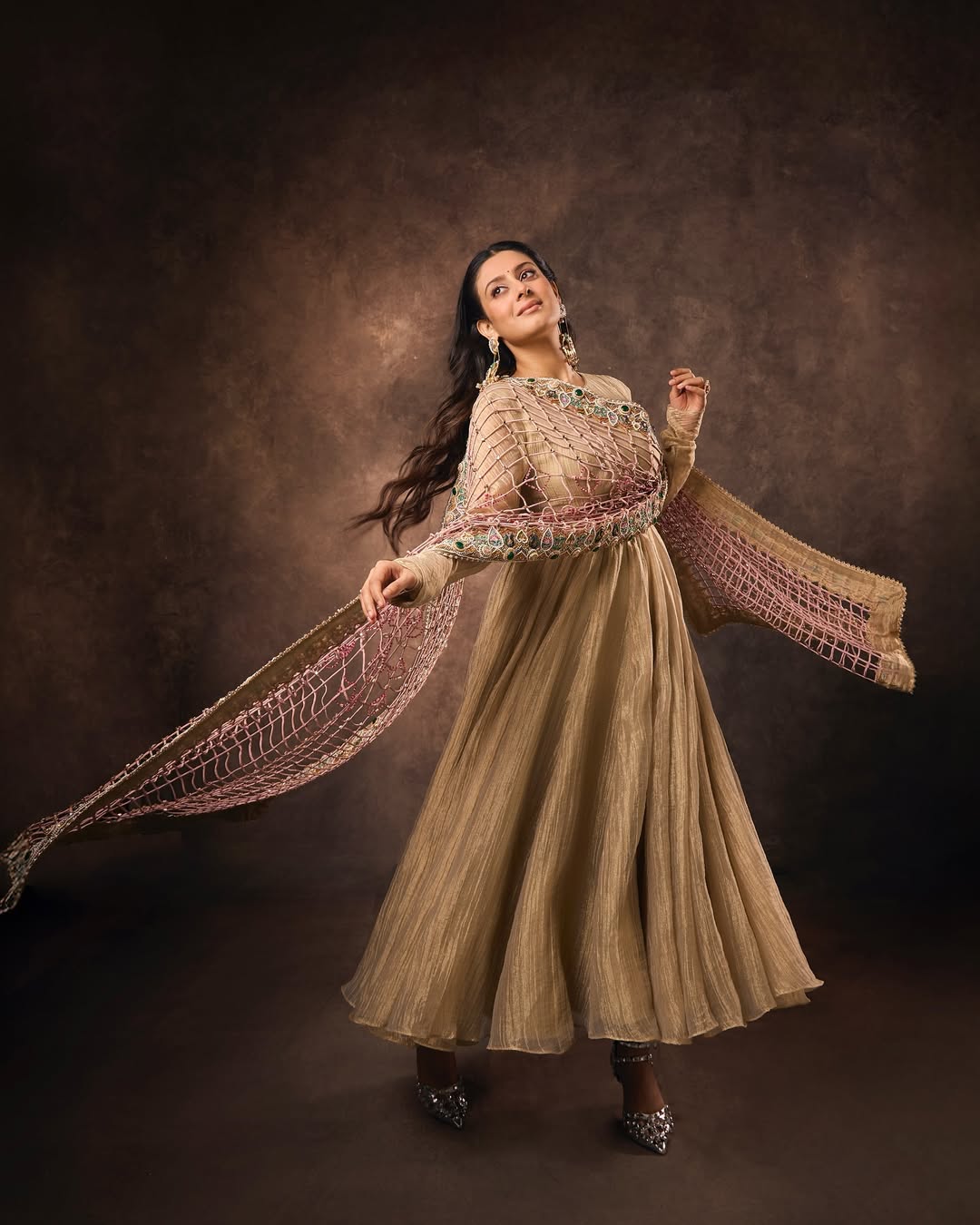 त्यात ईशाने नारिंगी रंगाची साडी व त्याला कॉन्ट्रास्ट ब्लाऊज परिधान केला आहे.
