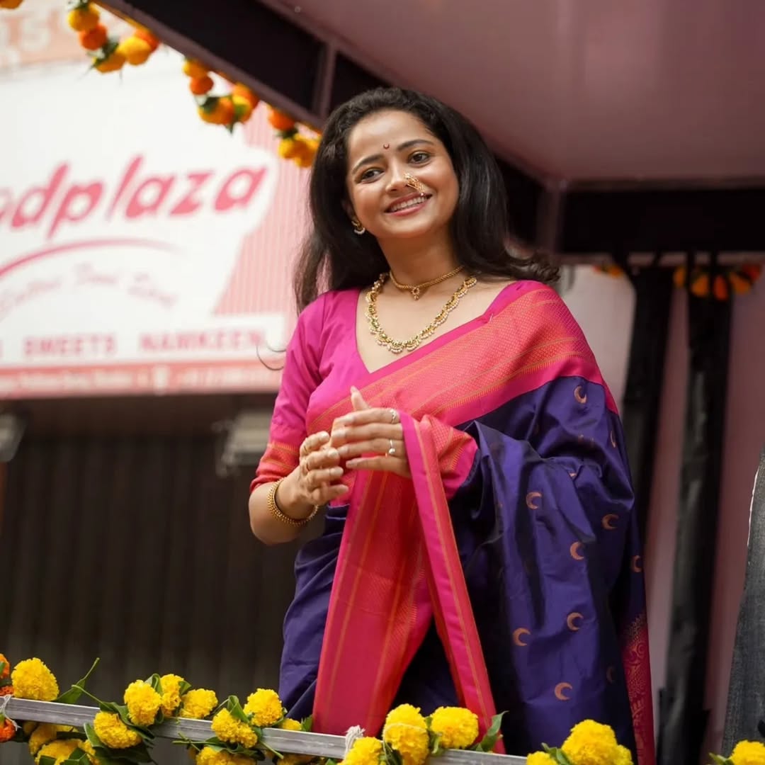 गुढीपाडव्यानिमित्त नेसली जांभळ्या रंगाची चंद्रकोर पैठणी साडी