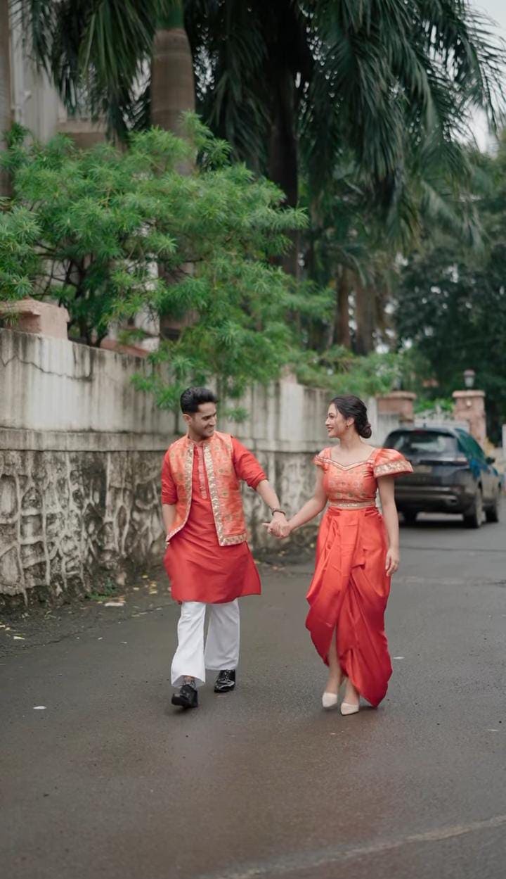 दोघांनीही केशरी रंगाचे कपडे परिधान केले आहेत.