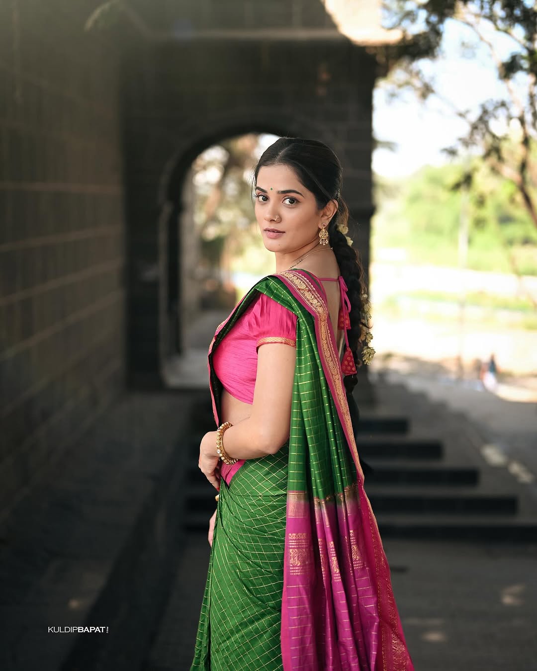 हिरव्या रंगाच्या साडीमध्ये फोटोशूट