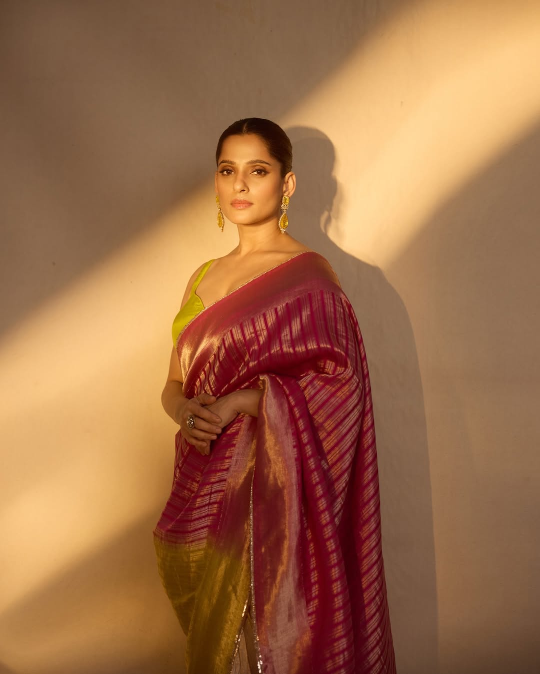 हिरवा ब्लाऊज आणि सिल्क साडीच्या कॉम्बिनेशनमध्ये प्रिया अतिशय ग्लॅमरस दिसत आहे.