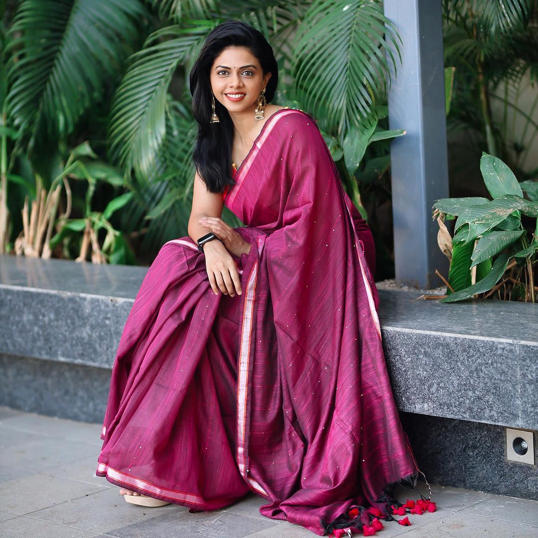 जांभळ्या रंगाच्या साडीतील सुंदर लूक
