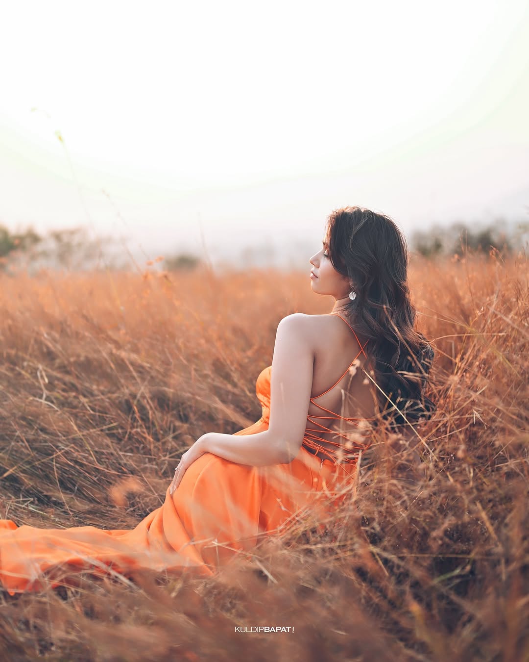 फोटोशूटसाठी परिधान केला भगव्या रंगाचा बॅकलेस ड्रेस