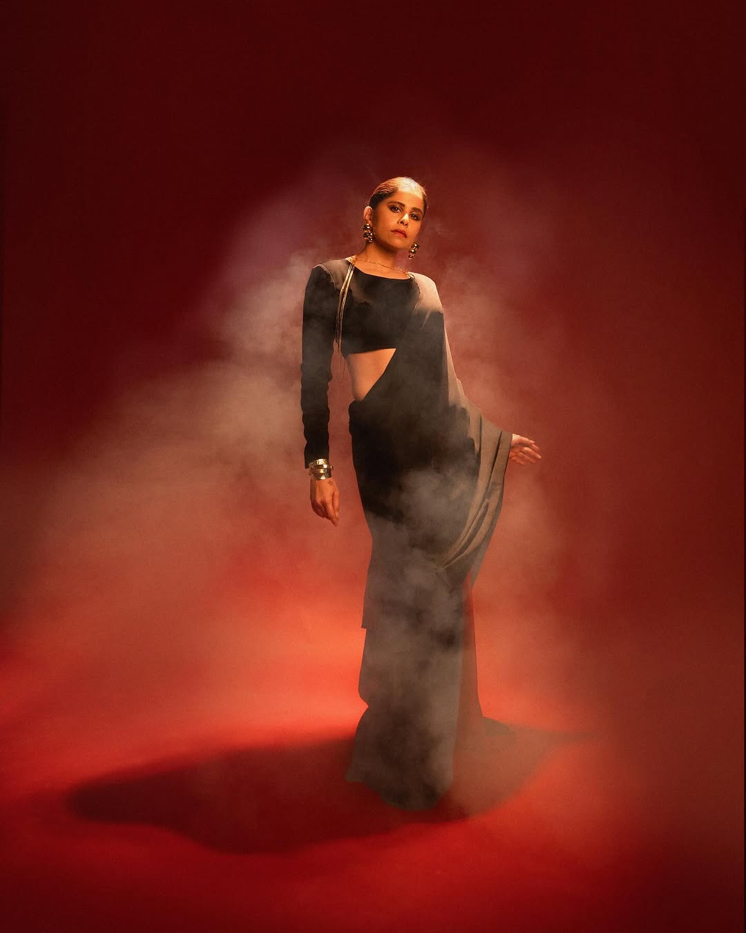 काळ्या रंगाची साडी केली परिधान