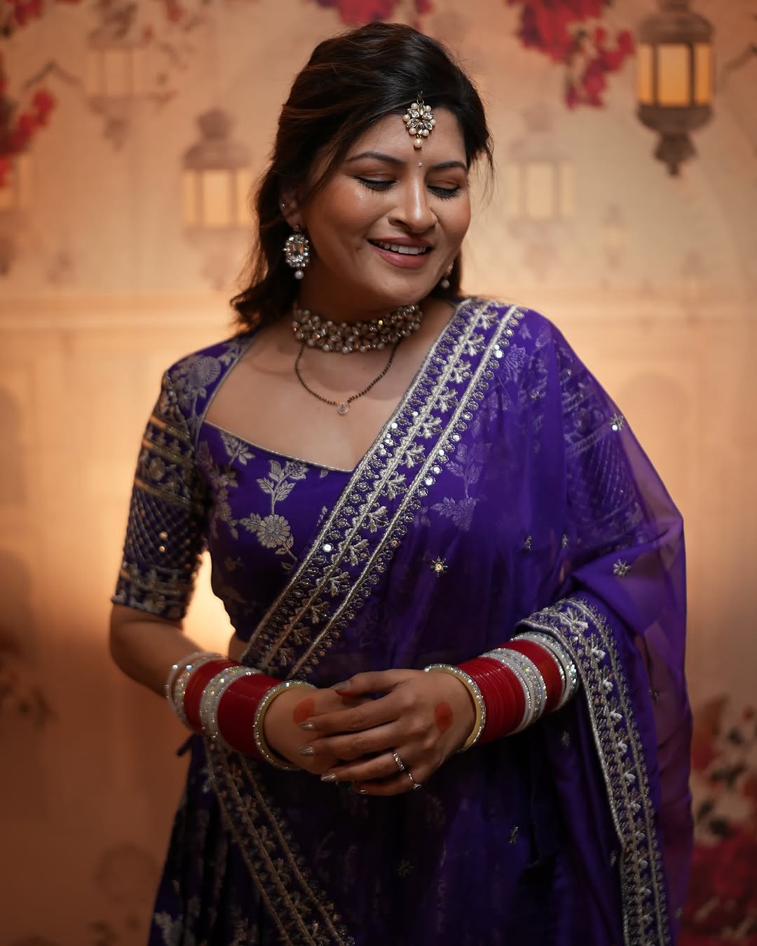 फोटोशूटसाठी परिधान केला जांभळ्या रंगाचा लेहेंगा