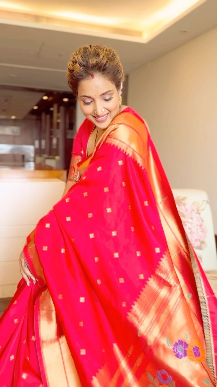 गुलाबी रंगाच्या पैठणी साडीतील सुंदर लूक