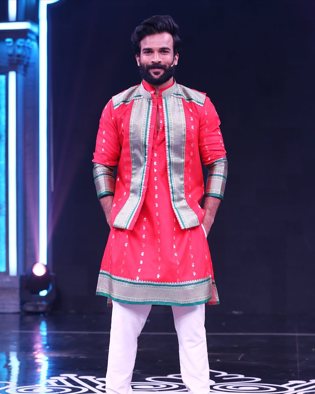 कार्यक्रमासाठी लाल रंगाचा पैठणी कुर्ता परिधान