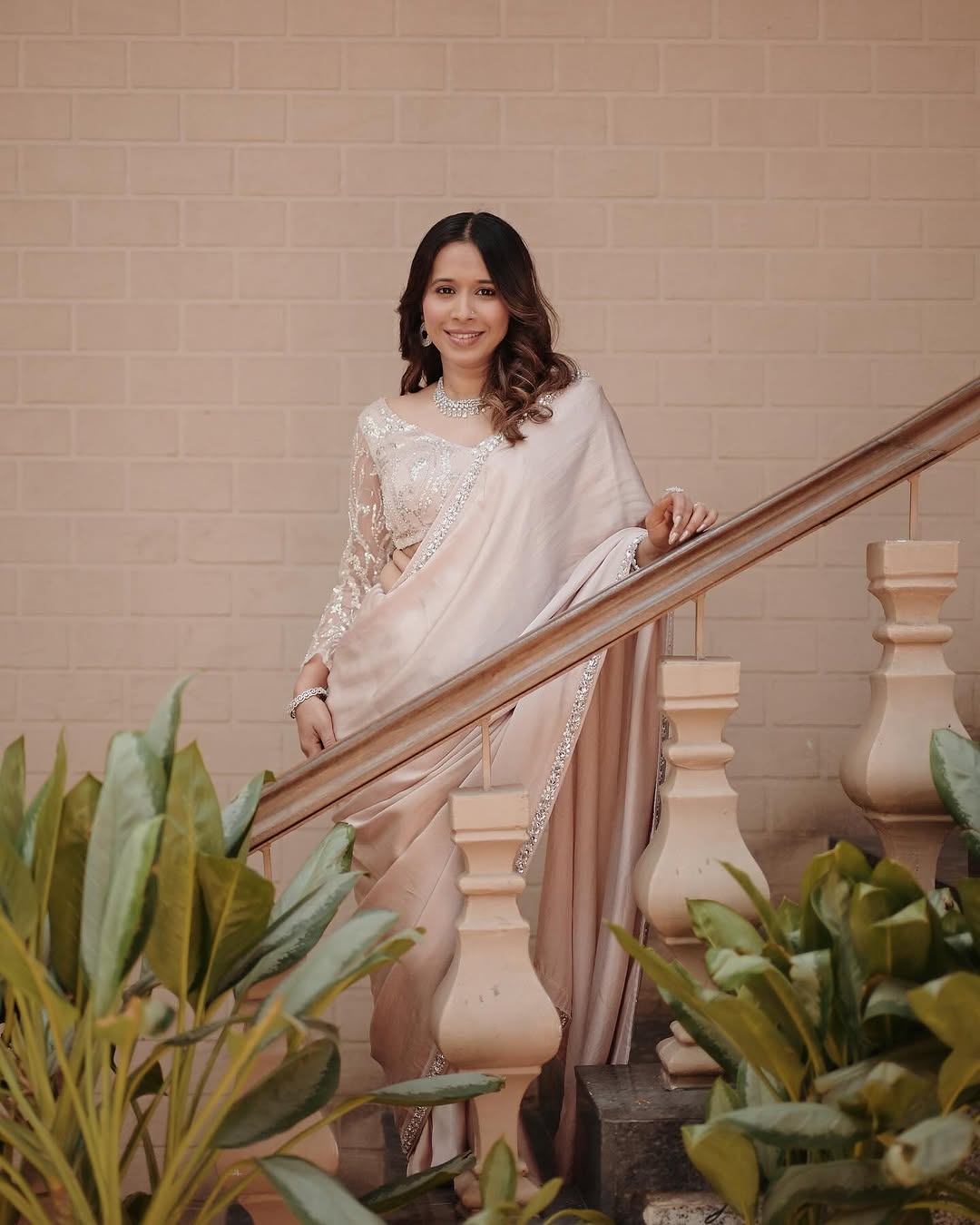 साडीतील लूकवर परिधान केले हिऱ्यांचे दागिने