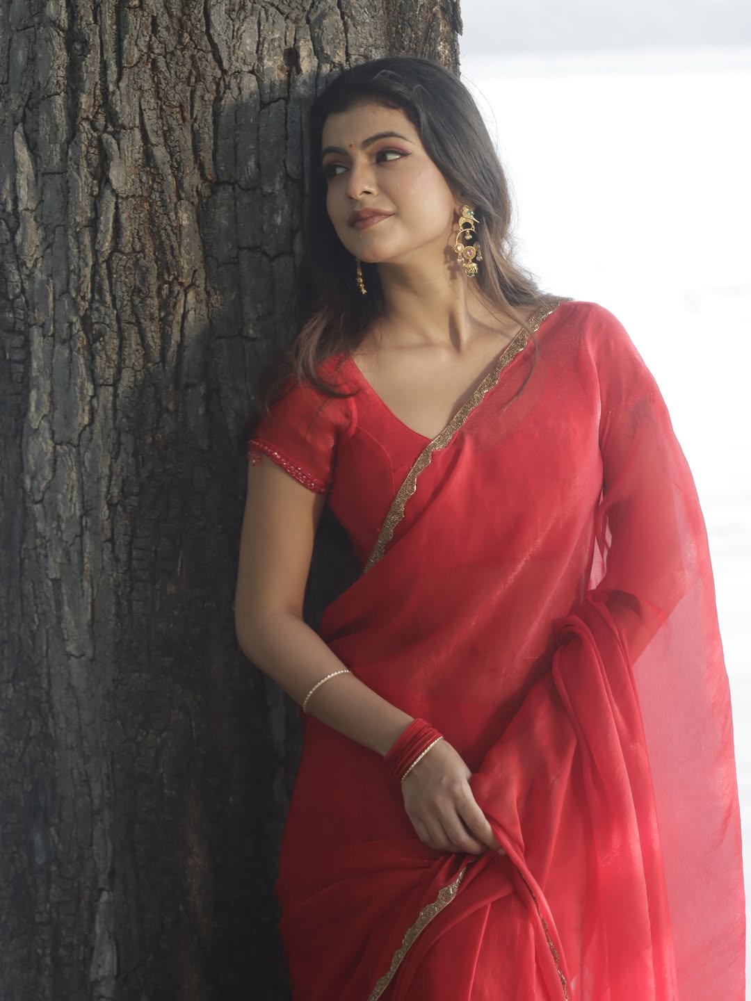 साधा मेकअप, मोकळे केस आणि आत्मविश्वासपूर्ण अंदाज, यामुळे अनुश्रीने सर्वांचे लक्ष वेधून घेतले.