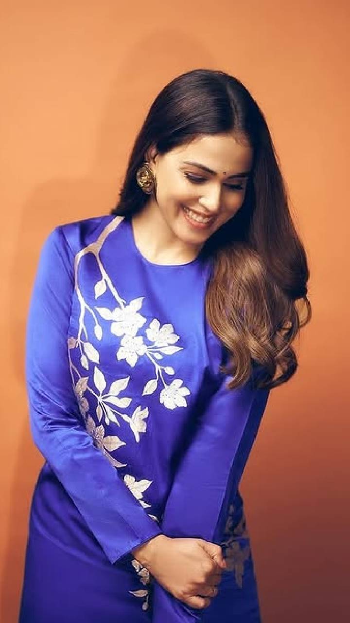 निळ्या रंगाच्या प्लेन ड्रेसमधील लूक