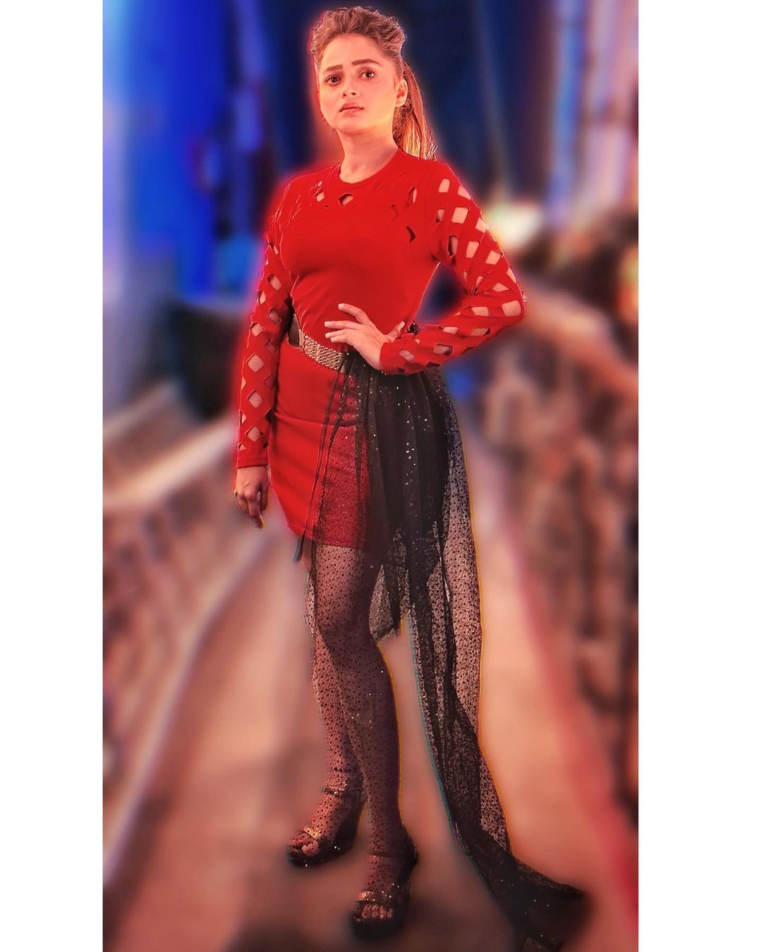 लाल कट-आऊट ड्रेसमध्ये फोटोशूट