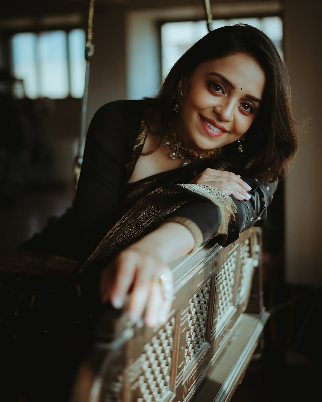 काळ्या साडीत खुलले कुंजिकाचे सौंदर्य