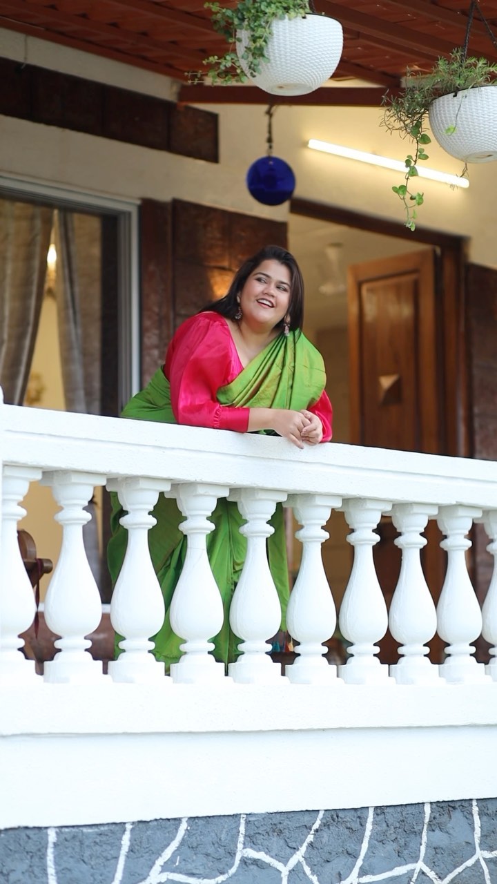 पोपटी रंगाच्या सॅटिन साडीतील खास लूक