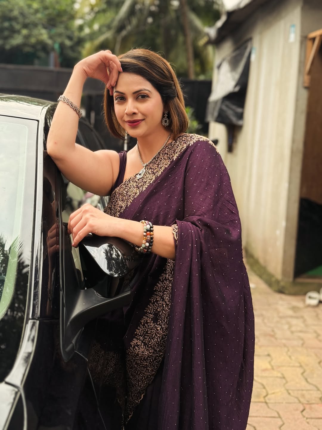 श्रेया बुगडेचा सोनेरी साडीतील खास लूक