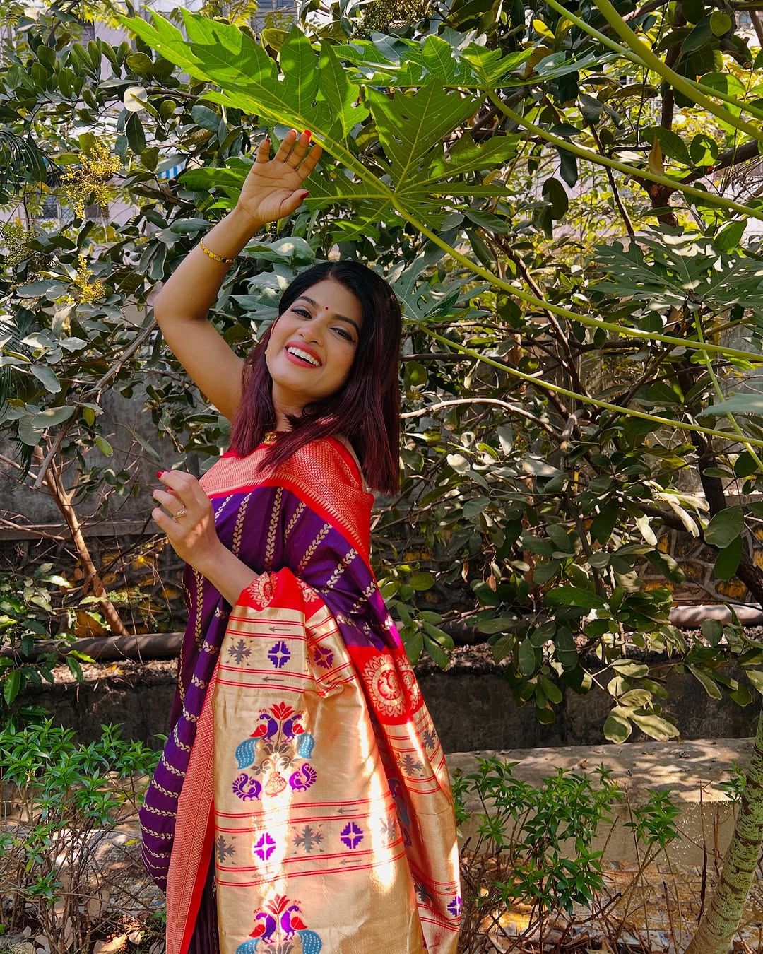 'Purplish…' असे पैठणी साडीतील फोटोंना कॅप्शन दिले