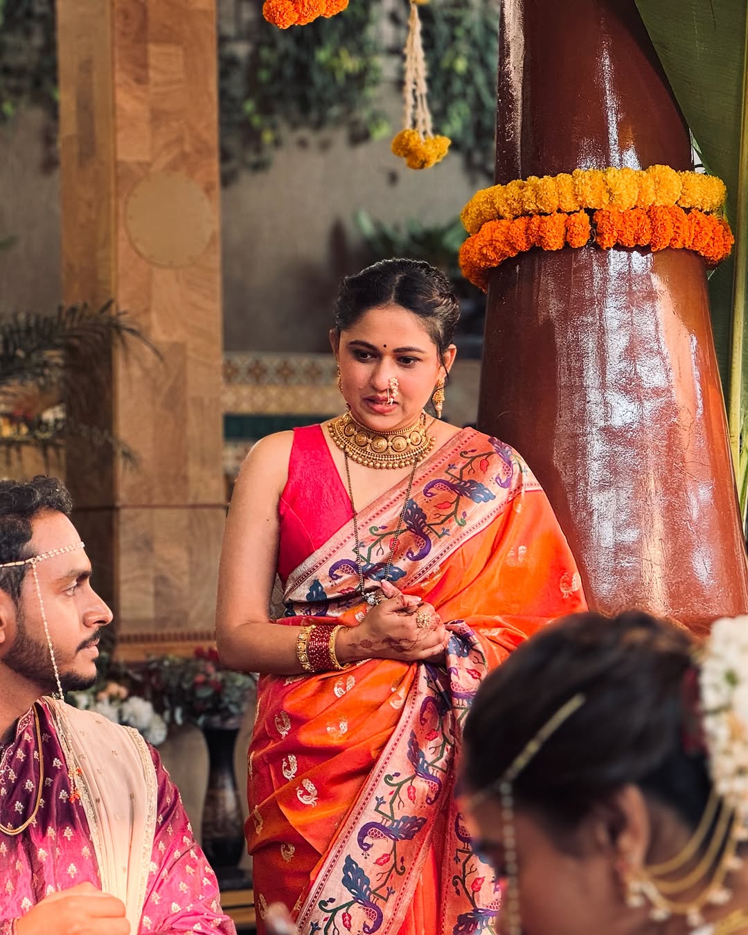 लग्नासाठी नेसली केशरी रंगाची सुंदर पैठणी साडी