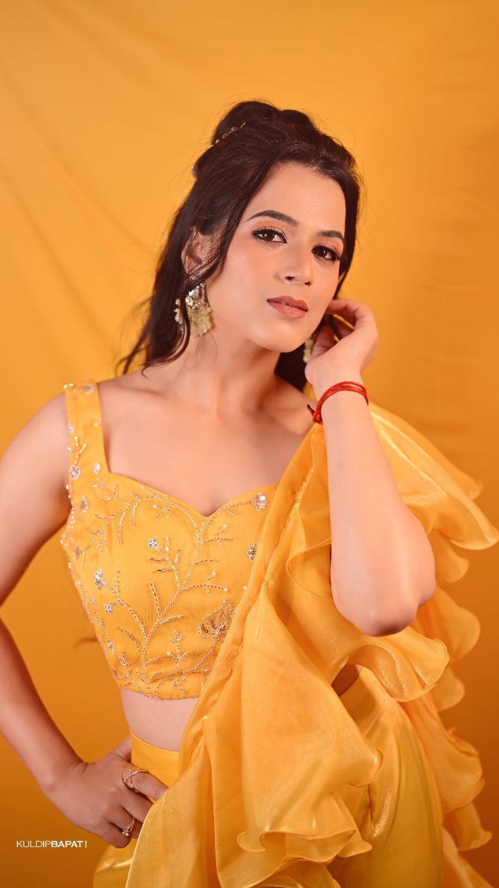 पिवळ्या रंगाचा स्टायलिश ड्रेस परिधान करत दाखवल्या खास अदा