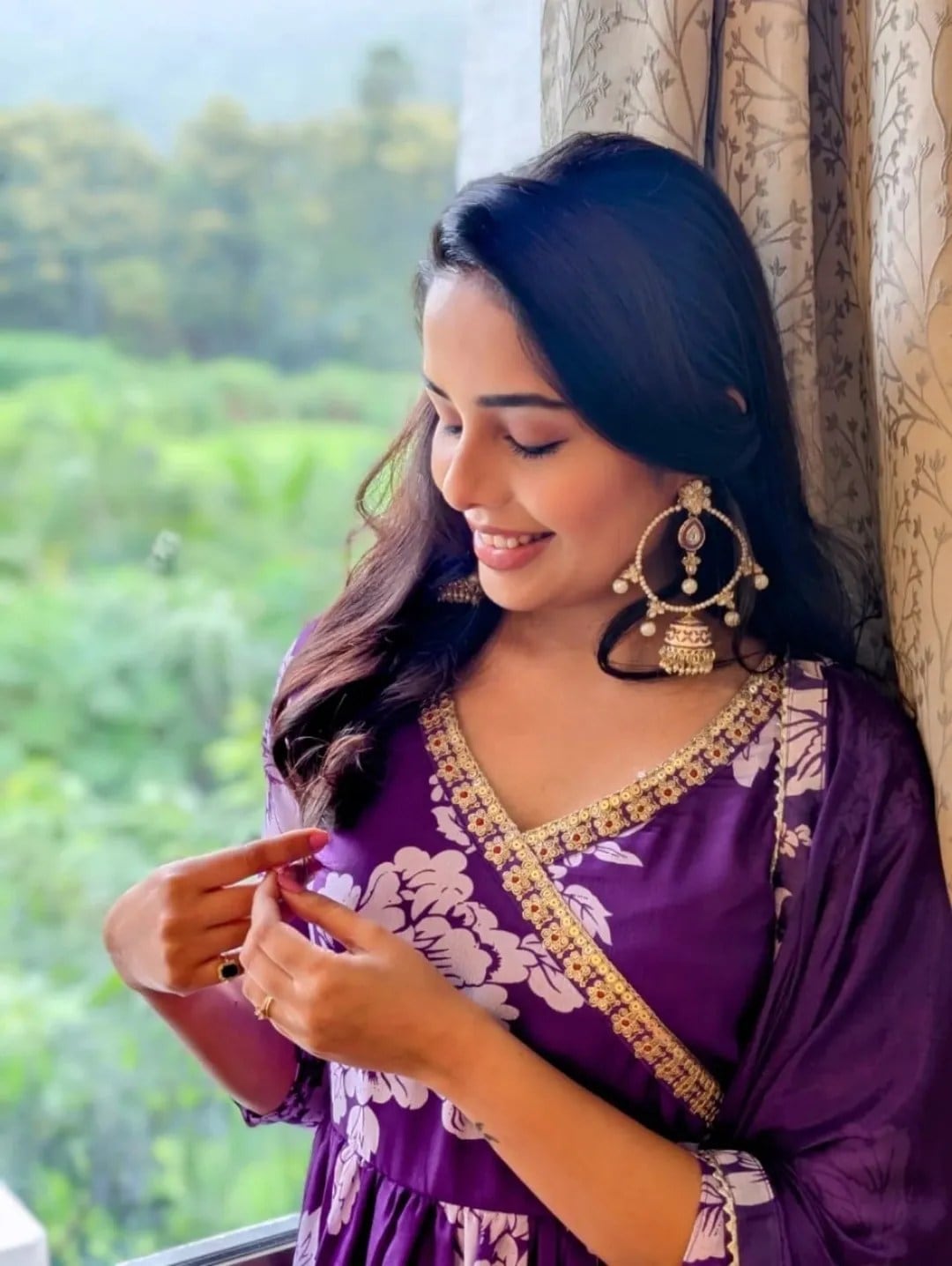 कपाळावर लाल छोटी टिकली आणि अंबाडा घालून तिने तिचा लूक पूर्ण केला आहे.