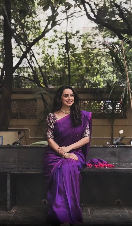 जांभळ्या रंगाच्या प्लेन साडीतील खास लूक