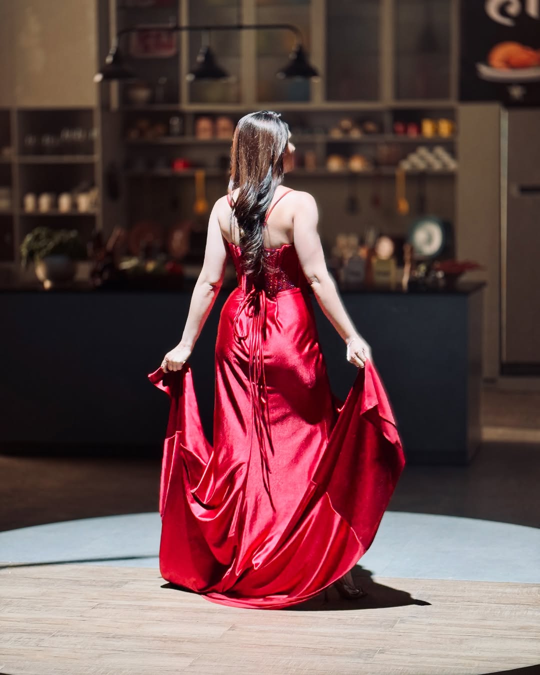 लाल रंगाचा सुंदर गाऊन केला परिधान