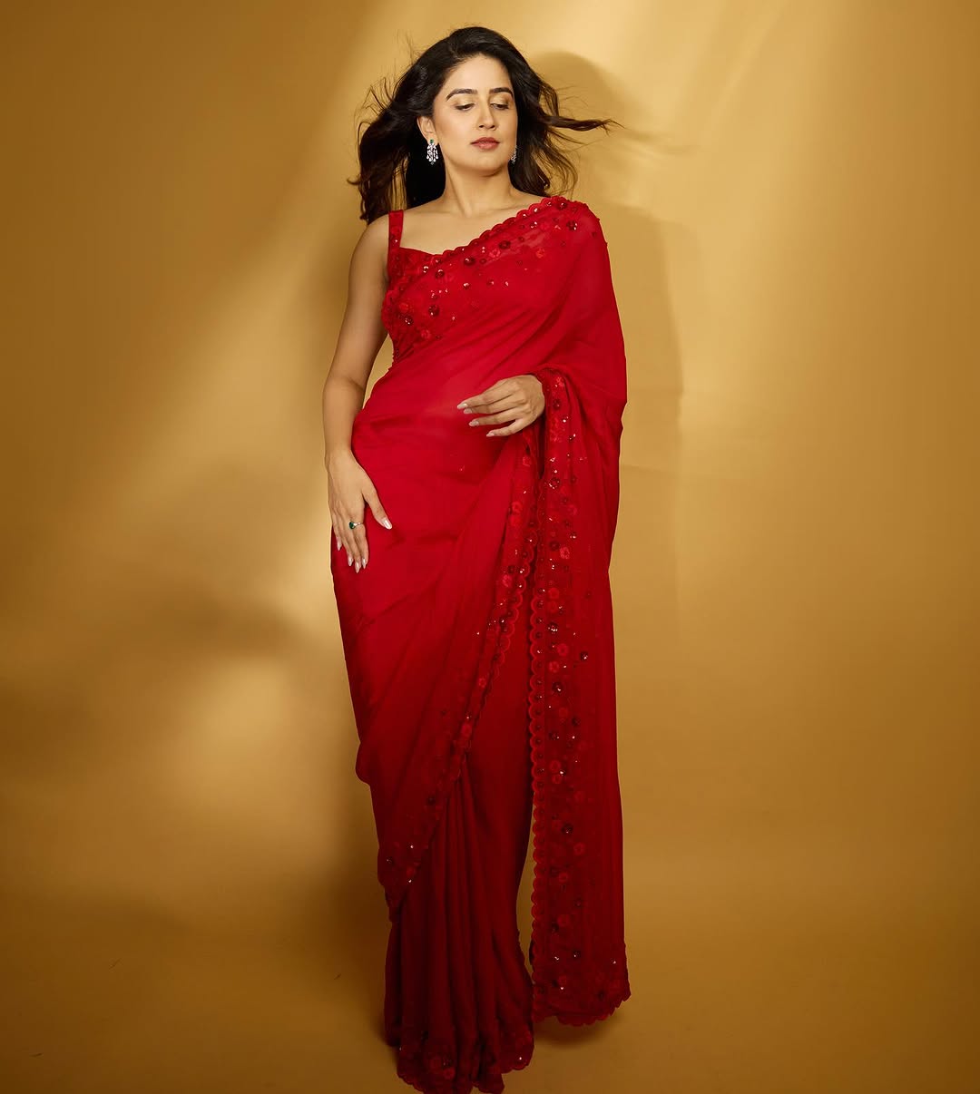 सुंदर लाल साडीमधील फोटो केले पोस्ट