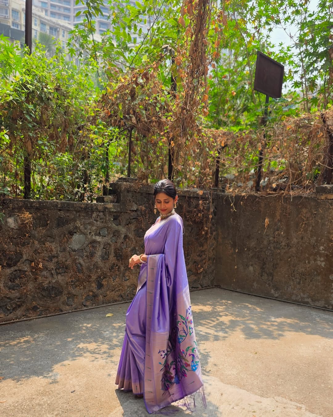 गुढीपाडव्यासाठी नेसली पेस्टल जांभळ्या रंगाची पैठणी साडी