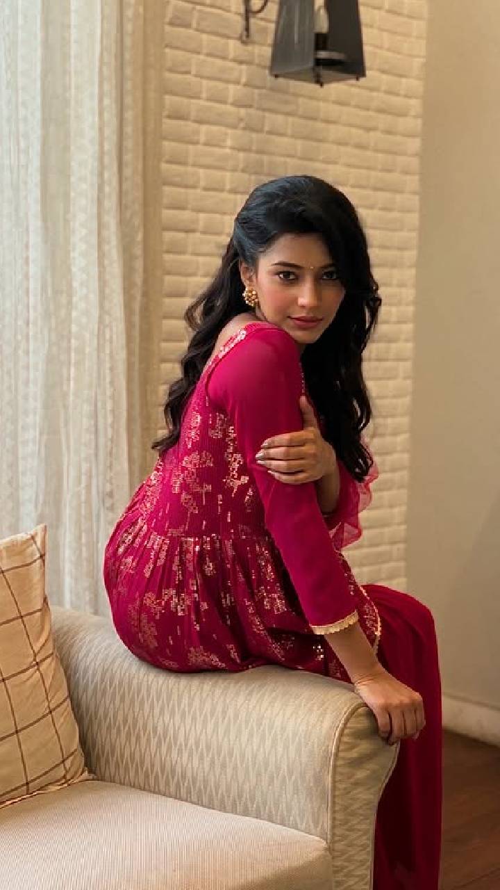 गुलाबी रंगाच्या डिझायनर ड्रेसवर मोकळे केस ठेवून केलं फोटोशूट